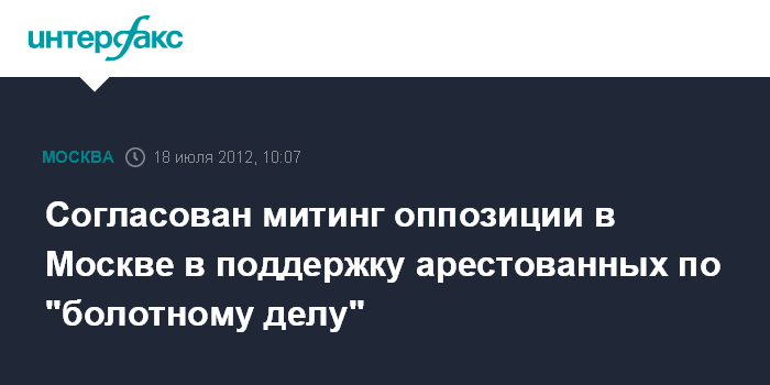 Москва. 18 июля. INTERFAX.RU - Столичное правительство согласовало митинг оппозиционного движения "Комитет 6 мая", запланированный на 26 июля в Новопушкинском сквере, сообщил замглавы департамента региональной безопасности Москвы Василий Олейник.