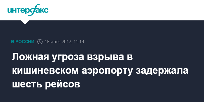 Кишинев. 18 июля. INTERFAX.RU - В среду утром из-за ложной угрозы взрыва бомбы в кишиневском аэропорту были задержаны шесть авиарейсов.