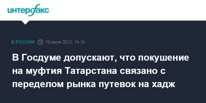 В Госдуме допускают, что покушение на муфтия Татарстана связано с переделом рынка путевок на хадж
