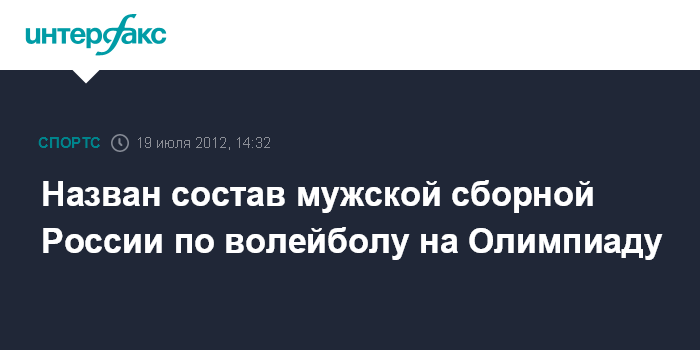 Москва. 18 июля. INTERFAX.RU - Главный тренер мужской сборной России по волейболу Владимир Алекно назвал состав команды на Олимпийские игры-2012.