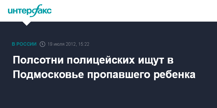 Москва. 19 июля. INTERFAX.RU - Несколько сотен полицейских, военнослужащие внутренних войск и волонтеры ищут пропавшего в Подмосковье 12-летнего мальчика.