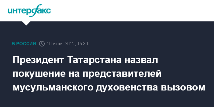 Президент Татарстана назвал покушение на представителей мусульманского духовенства вызовом