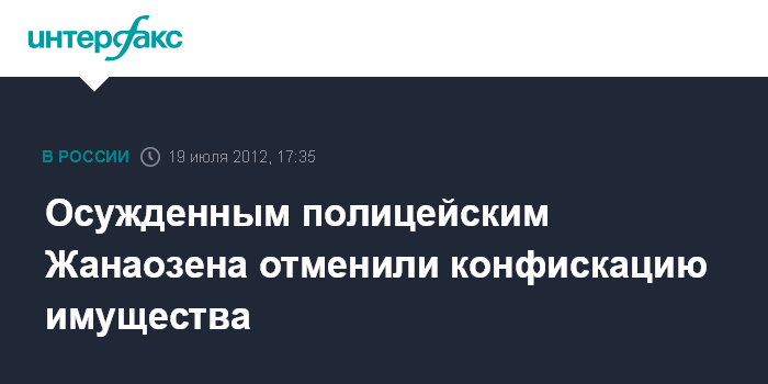 Актау. 19 июля. INTERFAX.RU - Апелляционная коллегия суда Мангистауской области в четверг отменила назначение наказания в виде конфискации имущества пяти осужденным полицейским, превысившим полномочия во время беспорядков в Жанаозене (город в регионе), сообщил корреспондент агентства "Интерфакс", присутствовавший на заседании коллегии.