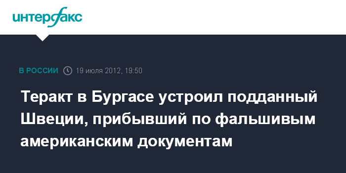 Теракт в Бургасе устроил подданный Швеции, прибывший по фальшивым американским документам