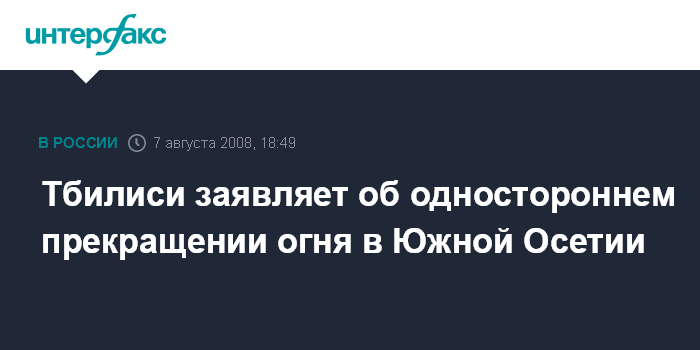 Тбилиси заявляет об одностороннем прекращении огня в Южной Осетии