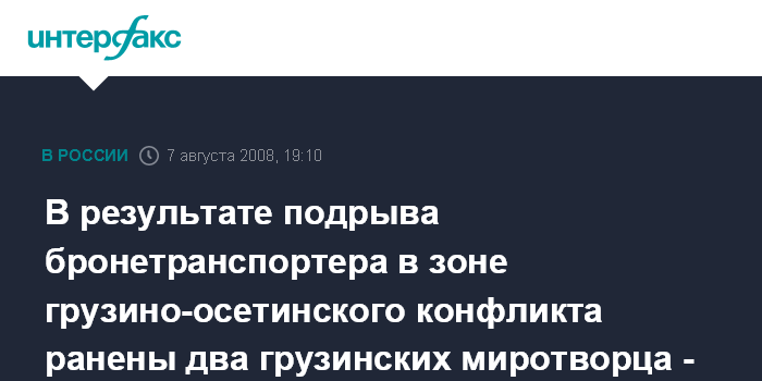 Тбилиси. 7 августа. ИНТЕРФАКС - В селе Авневи в зоне грузино- осетинского конфликта при подрыве БМП днем в четверг получили ранения двое военнослужащих грузинского миротворческого батальона, сообщили в пресс-службе МВД Грузии.