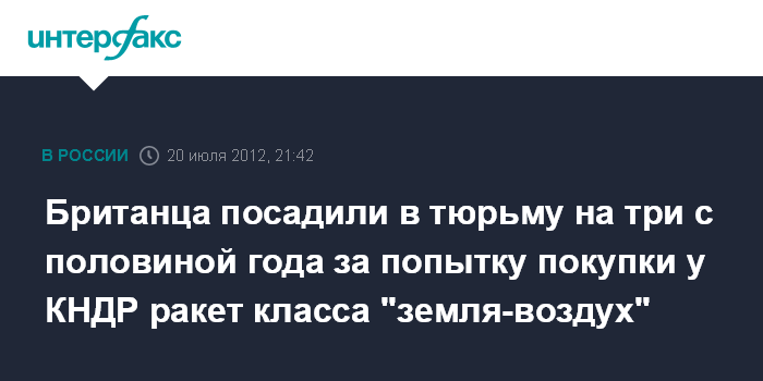Британца посадили в тюрьму на три с половиной года за попытку покупки у КНДР ракет класса "земля-воздух"