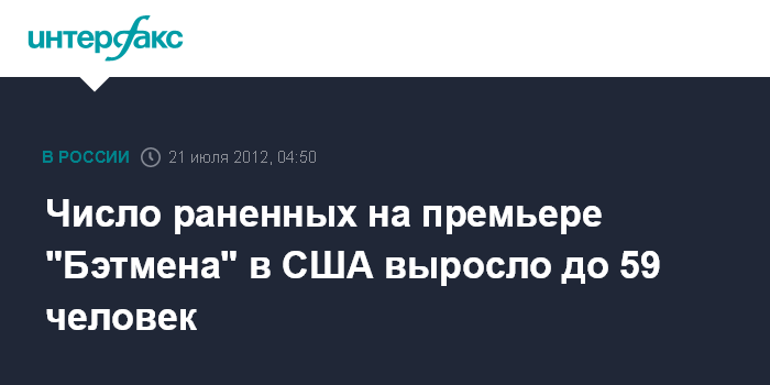Число раненных на премьере "Бэтмена" в США выросло до 59 человек