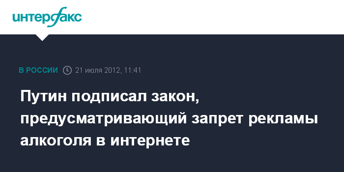 Путин подписал закон, предусматривающий запрет рекламы алкоголя в интернете