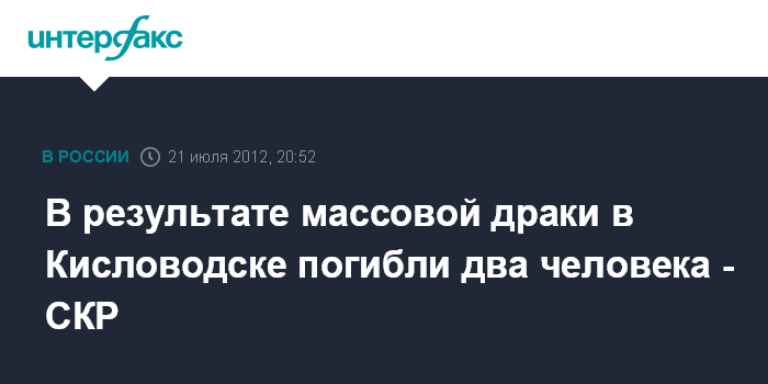"21 июля 2012 года примерно в 18 часов в центре города Кисловодска произошло массовое столкновение с участием 15 человек. По данному факту следственными органами Следственного комитета РФ возбуждено уголовное дело по признакам преступления, предусмотренного п.п. "а, б" ч.2 ст. 105 УК РФ (убийство двух и более человек)", - говорится в сообщении.