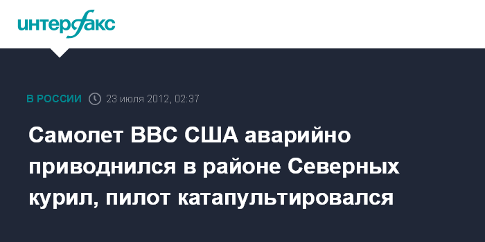 Самолет ВВС США аварийно приводнился в районе Северных курил, пилот катапультировался