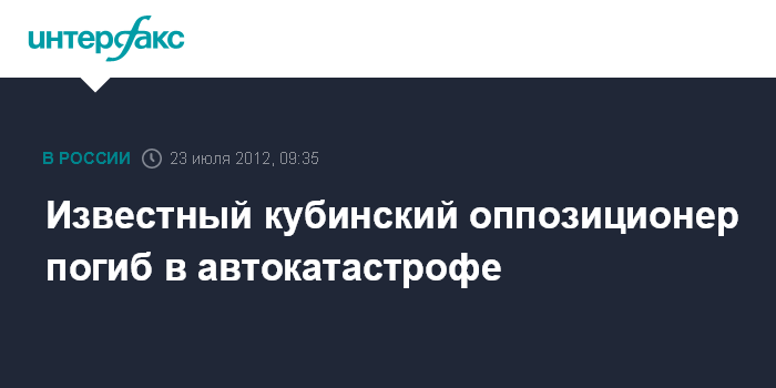 Вашингтон/Лондон. 23 июля. INTERFAX.RU - Председатель Движения христианского освобождения Кубы, видный кубинский оппозиционер Освальдо Пайя и представитель этого движения Арольд Сеперо погибли в воскресенье в автокатастрофе в провинции Гранма на востоке Кубы, сообщила в ночь на понедельник работающая для Кубы американская радиостанция Radio Marti.