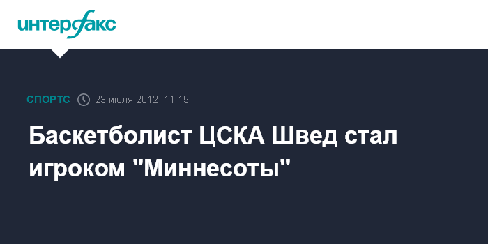 Москва. 23 июля. INTERFAX.RU - Защитник московского баскетбольного клуба ЦСКА Алексей Швед перешел в команду НБА "Миннесота Тимбервулвз", сообщает официальный сайт армейцев.