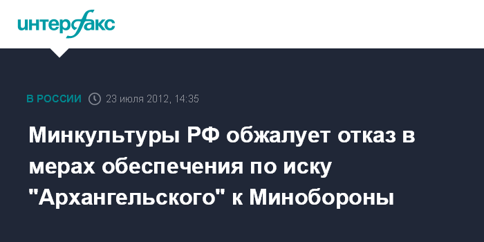 Минкультуры РФ обжалует отказ в мерах обеспечения по иску "Архангельского" к Минобороны