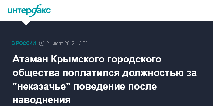 Атаман Крымского городского общества поплатился должностью за "неказачье" поведение после наводнения