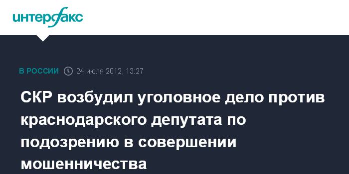 СКР возбудил уголовное дело против краснодарского депутата по подозрению в совершении мошенничества