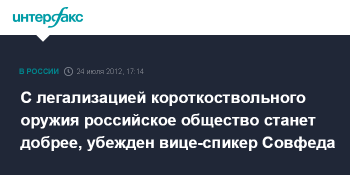 С легализацией короткоствольного оружия российское общество станет добрее, убежден вице-спикер Совфеда