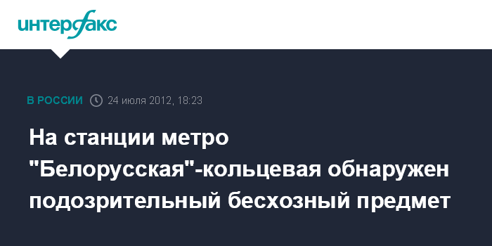 Москва. 24 июля. INTERFAX.RU - На станции "Белорусская" кольцевой линии московского метрополитена оцеплена часть платформы. Как сообщил корреспондент Interfax.ru, в данный момент полиция проверяет подозрительный бесхозный предмет, похожий на коробку, оставленный между колонн.