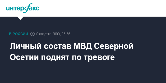 Владикавказ. 8 августа. ИНТЕРФАКС - Личный состав МВД Северной Осетии поднят по тревоге, сообщил рано утром в пятницу агентству "Интерфакс-Юг" исполняющий обязанности министра МВД Северной Осетии Сослан Сикоев.