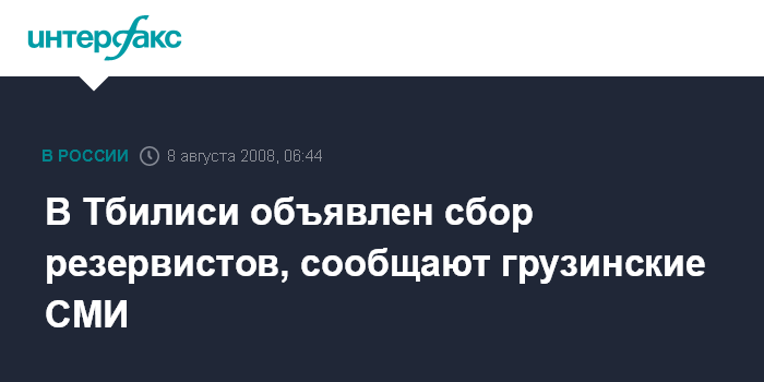 Москва. 8 августа. ИНТЕРФАКС - В Тбилиси с утра в пятницу начался сбор резервистов, сообщают грузинские СМИ.