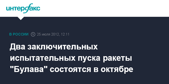 При этом, как сказал собеседник агентства, государственные ходовые испытания "Юрия Долгорукого" завершатся до конца октября. До этого времени планируем провести, как минимум, два испытательных пуска "Булавы", один в начале, другой в крайних числах месяца.