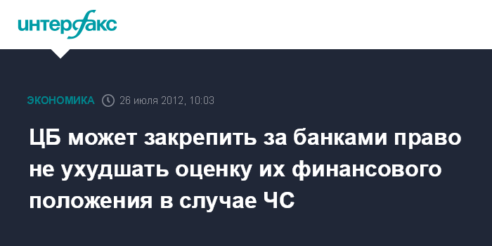 ЦБ может закрепить за банками право не ухудшать оценку их финансового положения в случае ЧС