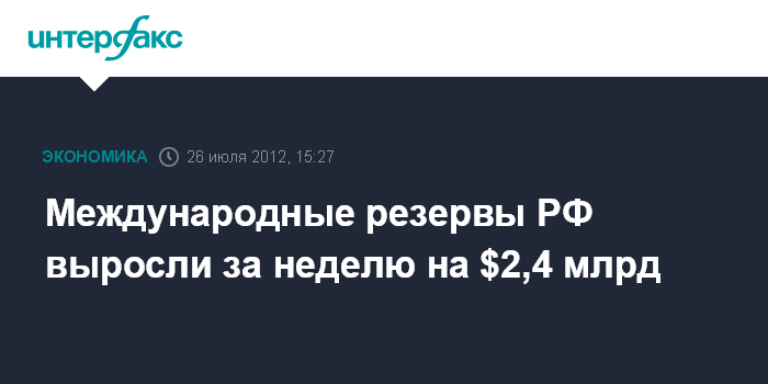 Международные резервы РФ выросли за неделю на $2,4 млрд