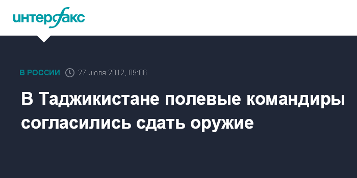 Душанбе. 27 июля. INTERFAX.RU - В Горно-Бадахшанской автономной области (ГБАО) на востоке Таджикистана бывшие полевые командиры оппозиции согласились выполнить первый из двух пунктов ультиматума властей - добровольно сложить оружие, сообщил в пятницу "Интерфаксу" источник, близкий к проведению операции в ГБАО.