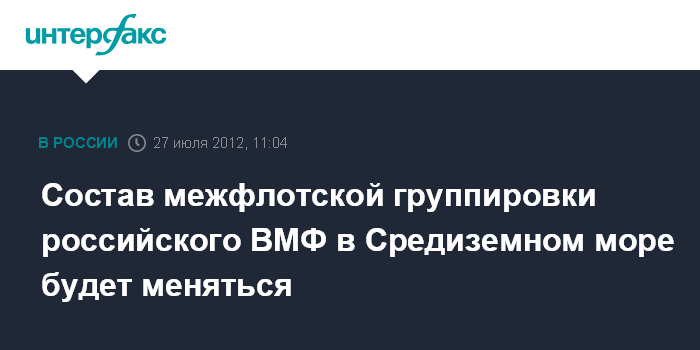 Москва. 27 июля. INTERFAX.RU - Корабли объединенной межфлотской группировки ВМФ России, выполняющие задачи боевой службы в Средиземном море, будут подвергаться ротации, сообщил "Интерфаксу-АВН" в пятницу источник в Главном штабе ВМФ.