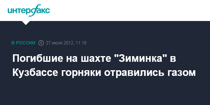 Кемерово. 27 июля. INTERFAX.RU - Гибель трех шахтеров "Зиминки" в Кемеровской области произошла в результате отравления скопившимся в смежных выработках газом, сообщает в пятницу пресс-служба обладминистрации. При этом администрация региона отмечает, что это пока предварительная версия их гибели.