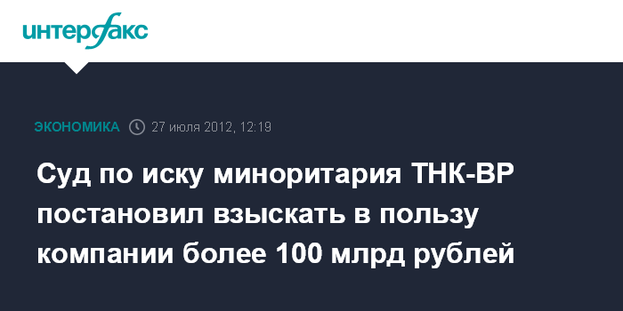 Суд по иску миноритария ТНК-BP постановил взыскать в пользу компании более 100 млрд рублей