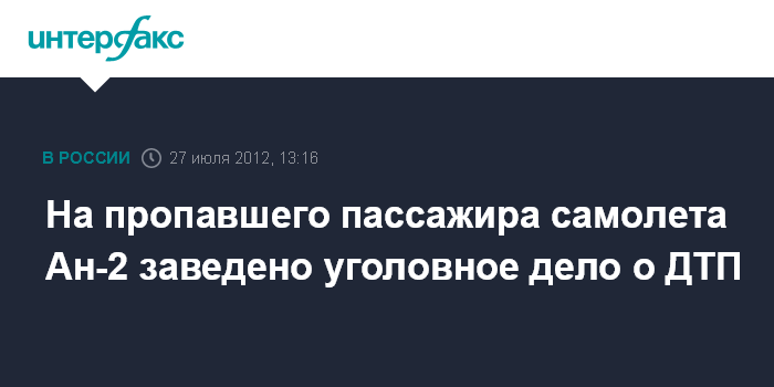 На пропавшего пассажира самолета Ан-2 заведено уголовное дело о ДТП