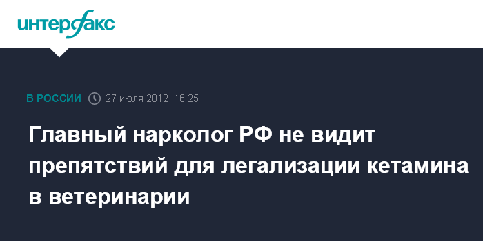 Главный нарколог РФ не видит препятствий для легализации кетамина в ветеринарии