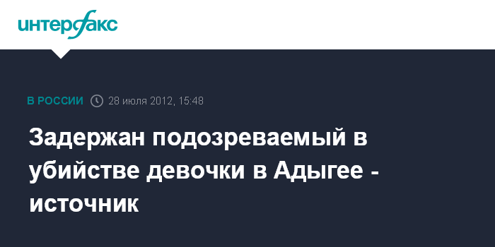 Задержан подозреваемый в убийстве девочки в Адыгее - источник