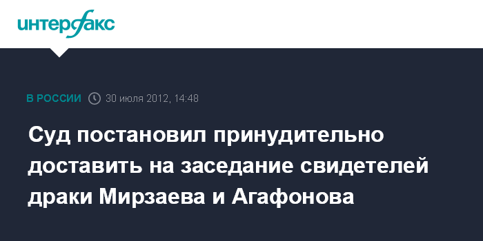 Суд постановил принудительно доставить на заседание свидетелей драки Мирзаева и Агафонова
