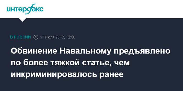 Обвинение Навальному предъявлено по более тяжкой статье, чем инкриминировалось ранее