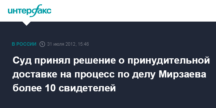 Суд принял решение о принудительной доставке на процесс по делу Мирзаева более 10 свидетелей