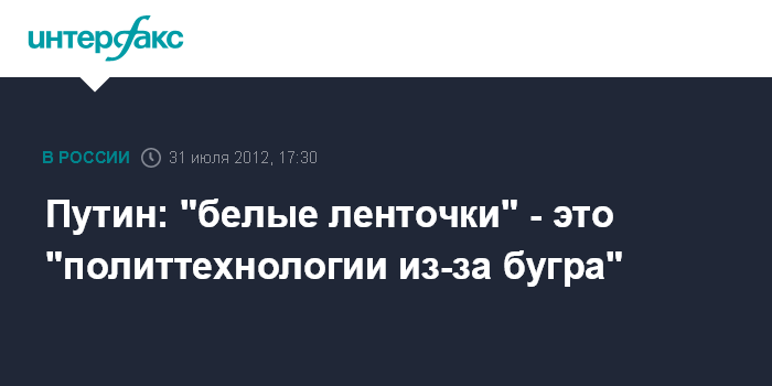Селигер (Тверская область). 31 июля. INTERFAX.RU - Президент РФ Владимир Путин пояснил свою позицию по поводу высказывания в адрес активистов оппозиции, использующих белую ленту в качестве символики, - он не против них, но считает это политтехнологией "из-за бугра".