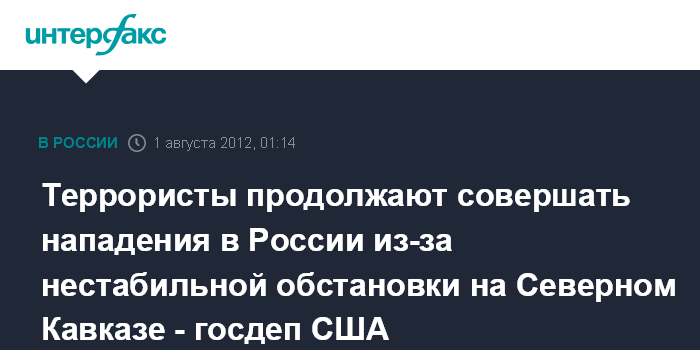 Террористы продолжают совершать нападения в России из-за нестабильной обстановки на Северном Кавказе - госдеп США