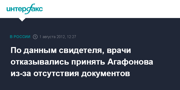 По данным свидетеля, врачи отказывались принять Агафонова из-за отсутствия документов