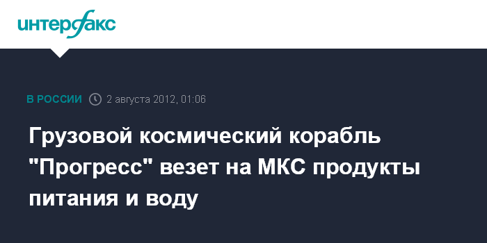 Грузовой космический корабль "Прогресс" везет на МКС продукты питания и воду