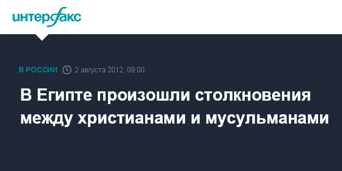 Лондон. 2 августа. INTERFAX.RU - В Египте вновь произошли волнения на религиозной почве, после того как в результате драки с христианином скончался мусульманин, сообщает BBC в четверг.