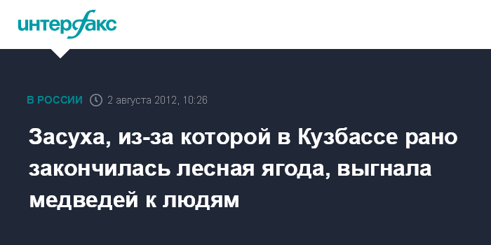 Кемерово. 2 августа. INTERFAX.RU - Жаркая и сухая погода в Кемеровской области, из-за которой в лесах рано закончилась ягода, заставила медведей выходить к поселкам, где они разорят мусорные баки и пугают людей.