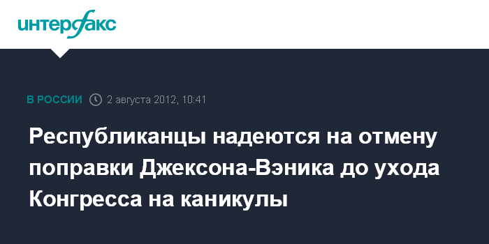 Республиканцы надеются на отмену поправки Джексона-Вэника до ухода Конгресса на каникулы