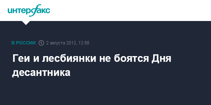 Москва. 2 августа. INTERFAX.RU - Гей-активисты в четверг не намерены воздерживаться от посещения парков и площадей, где бывшие военнослужащие ВДВ отмечают день десантника.