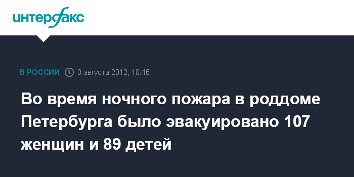 Санкт-Петербург. 3 августа. INTERFAX.RU - Из-за возгорания в сестринской роддома N1 на Васильевском острове Петербурга были эвакуированы более 100 женщин 89 детей, сообщила пресс-служба Главного управления МЧС по северной столице.
