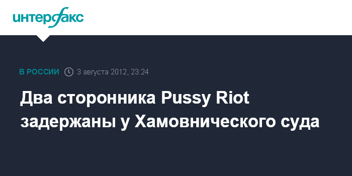 Москва. 3 августа. INTERFAX.RU - Двух человек задержали у входа в Хамовнический суд Москвы, где проходит процесс над участницами панк-группы Pussy Riot.