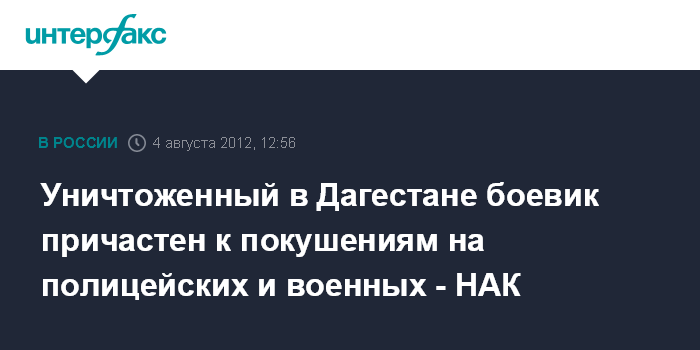 Уничтоженный в Дагестане боевик причастен к покушениям на полицейских и военных - НАК