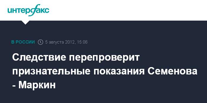 Москва. 5 августа. INTERFAX.RU - Показания задержанного в Тверской области 30-летнего жителя Читы Дмитрия Семенова, признавшегося в убийстве 5-летнего Богдана Прахова, будут тщательно перепроверены, заявляют в СКР. "Показания задержанного полицией Семенова не являются определяющими в доказывании его причастности к убийству Богдана Прахова. Как и в любом другом случае, следователями будет проведен исчерпывающий комплекс следственных мероприятий", - заявил "Интерфаксу" в воскресенье официальный представитель СКР Владимир Маркин, пояснив, что речь идет о назначении повторной экспертизы ДНК и о проверке показаний на месте, и о допросах свидетелей.