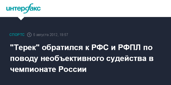 Москва. 5 августа. INTERFAX.RU - Грозненский футбольный клуб "Терек" недоволен работой судей в матчах с командами "Крылья Советов" (1 тур. Судья Сергей Карасев) и "Алания" (3 тур. Судья Сергей Лапочкин).